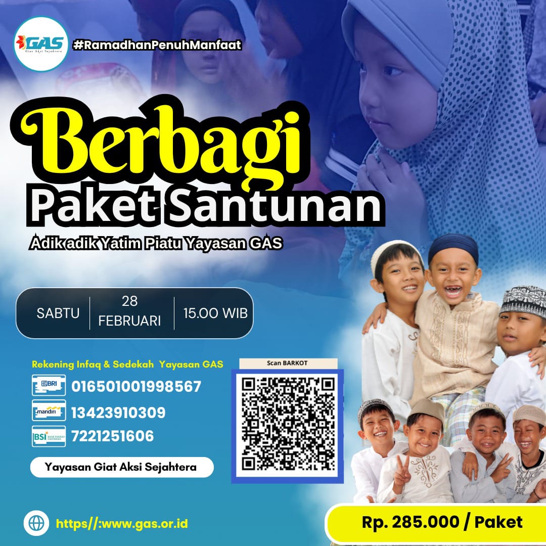 Program Santunan Ramadhan 1447 H yang diselenggarakan oleh Yayasan Giat Aksi Sejahtera bertujuan membantu memenuhi kebutuhan adik-adik binaan melalui zakat, infaq, dan sedekah dari para donatur.